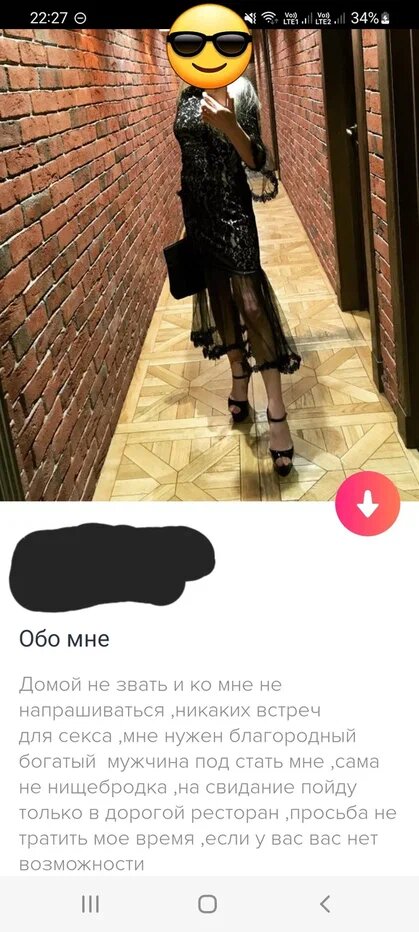 Tinder: "благородный мужчина под стать мне, сама не нищебродка"