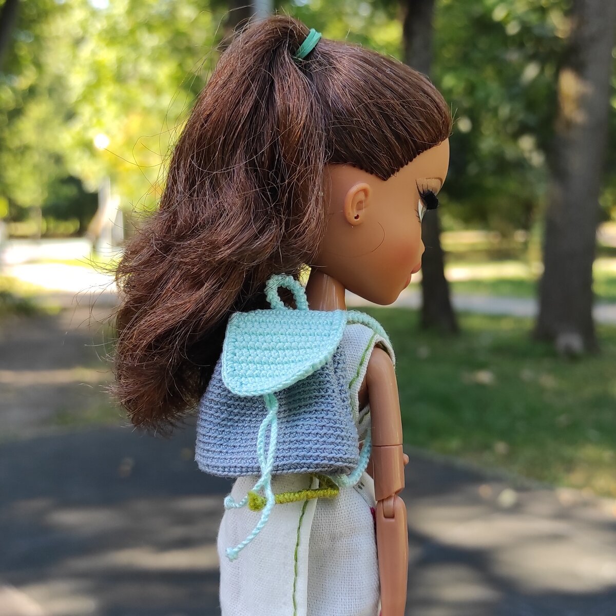 Минусы: нужно уметь вязать; затратно по времени, свой я связала за 2 дня; большинство МК для людей, кукольные рюкзаки тяжело найти.
