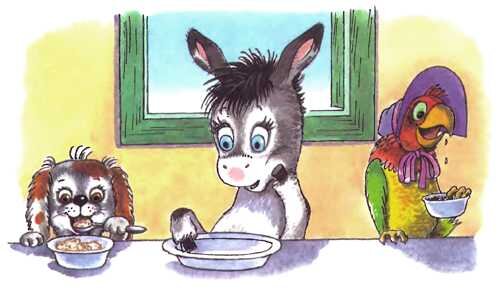 — Я устал! — сказал он. — Это очень трудно — быть сразу и сыщиком, и волшебником! — И добавил: — Пойду домой, поем морковки, а потом хорошенько высплюсь. До свиданья!.. Да! Совсем забыл про Освальда… Знаешь что, Освальд? Сходи-ка на кухню и съешь что-нибудь, только съедобное! Не проглоти по ошибке кастрюлю или ложку.