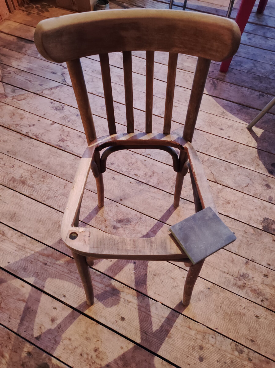 Всем привет! Не понимаю людей, которые выбрасывают такие вещи. Венские стулья - шедевр мебельного искусства, на мой взгляд. Ну продайте с авито или отдайте кому-нибудь за самовывоз. Когда такая вещь погибает на свалке, сердце сжимается! Три прекрасных стула были обнаружены нами на городской свалке. Состояние приличное, но у всех трёх проломлено сиденье. Отшлифовала наждачкой древесину. Убрала пыль. Акриловой краской нанесла первый слой. Дождалась полного высыхания и покрыла второй раз. Захотелось украсить спинку каким-нибудь узором или картинкой. Рисовую декупажную карту с рисунком оборвала по контуру. Нужно именно обрывать, чтобы края карты легли сглаженно. Вырезать нельзя! На клей ПВА аккуратно приклеила рисунок. В белую акриловую краску добавила колер цвет "морская волна". И лëгкими вбивающими движениями нанесла тон. Жду папу, когда выпилит сиденье и буду обтягивать. А пока начала вязать чехол на будущее сиденье. Вяжу из хлопковой верёвки. Продолжение следует...