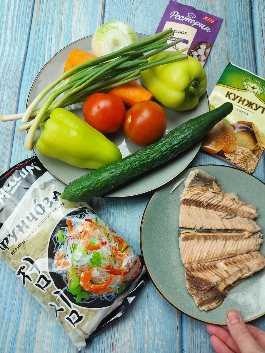 20 минут и готово! Вот, если вы любите фунчозу, то рецепт однозначно для вас) Что потребуется? 1️⃣Овощи нарезали, горбушу предварительно отварили, фунчозу залили кипятком. 2️⃣Обжариваем сначала лук, а затем добавляем морковь. 3️⃣Добавляем помидоры, сладкий перец и обжариваем. 4️⃣К овощам добавляем соевый соус, чеснок и вкусную соль. Посыпаем кунжутом. 5️⃣Фунчозу промыли. Добавляем огурцы и овощи. И вот такая красота получается! Из самых простых продуктов, а как вкусно👍 P.S. Фунчозу покупаю в Пятёрке) #постныеблюда #постноеменю #чтоприготовитьнаужин #фунчозарецепт #фунчозасовощами
