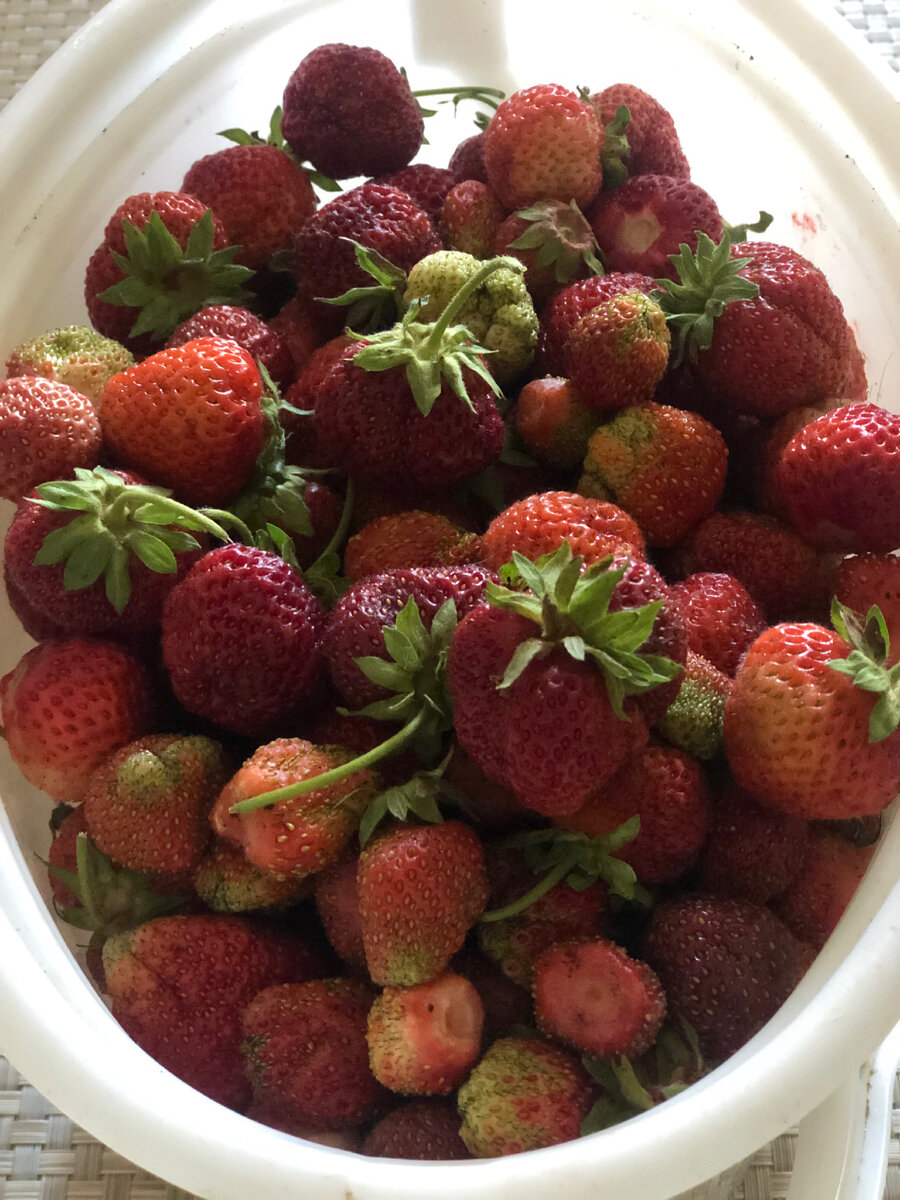 Клубничный компот - самый сладкий и самый ароматный из всех компотов. Компот из клубники по этому рецепту хоть и готовится без стерилизации, но при этом прекрасно хранится в условиях квартиры. Моем банки . Сейчас удобно , что есть посудомойки, банки не нужно стерилизовать, т.к. в посудомойке достачно высокие температуры и сушка посуды производится паром. Моем ягоды. Ягоды клубники удобно мыть в ёмкости ,заливая её водой полностью, тогда ягода всплывает, а вся грязь оседает на дне ёмкости с водой . Раскладываем ягоды 🍓 по банкам Засыпаем примерно 1/3 трехлитровой банки ягодой 🍓 Кладём веточку мяты Заливаем кипятком Накрываем крышкой Настаиваем 20 минут Сливаем в кастрюлю настой из одной трехлитровой банки через крышку с дырочками,чтобы ягода осталась в банке , добавляем 200 г. сахара, кипятим 1 минуту. Ещё стерилизуем крышки в кипятке. Заливаем вновь в банку с ягодой уже сладкий компот, накрываем крышкой и закатываем машинкой. Переворачиваем, и ждём остывания. Вкусные и ар