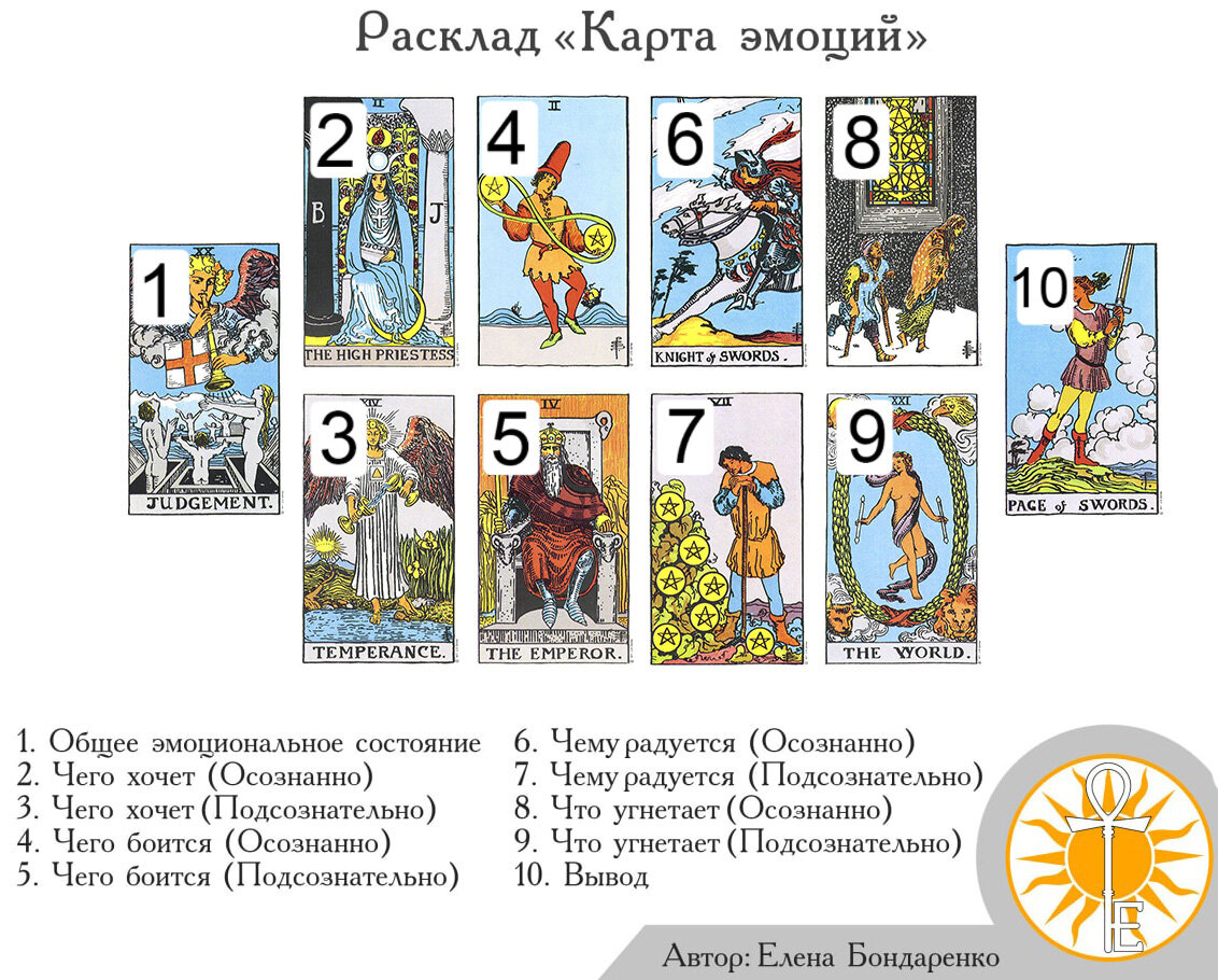 Итак, по просьбам наших подписчиков, рассматриваем пример расклада “Карта эмоций”. Расклад не новичковый, но, думаю полезно будет всем. 🔶 Клиент женщина, 48 лет. Публикую трактовку сразу правильную основанную на обратной связи. Будет “многабукав”. 1️⃣ Общее эмоциональное состояние - Суд - Ситуация в жизни такова, что сейчас период застоя, ничего не меняется и это действует угнетающе, стаскивая человека в депрессию. В голову лезут дурацкие мысли о том, что всё хорошее уже позади, а впереди ничего позитивного не будет. 2️⃣ Чего хочет осознанно - Жрица - Она стремится к изучению различных эзотерических направлений, получению знаний, чтобы разобраться в себе и найти выход из сложившейся ситуации. 3️⃣ Чего хочет подсознательно - Умеренность - Но подсознательно она не хочет ничего менять. Да, хочет покоя и гармонии. Прийти к внутреннему балансу, но предпринимать активных действий для достижения этого не готова и максимально тянет время, чтобы остаться в своей зоне комфорта. 4️⃣ Чего бои