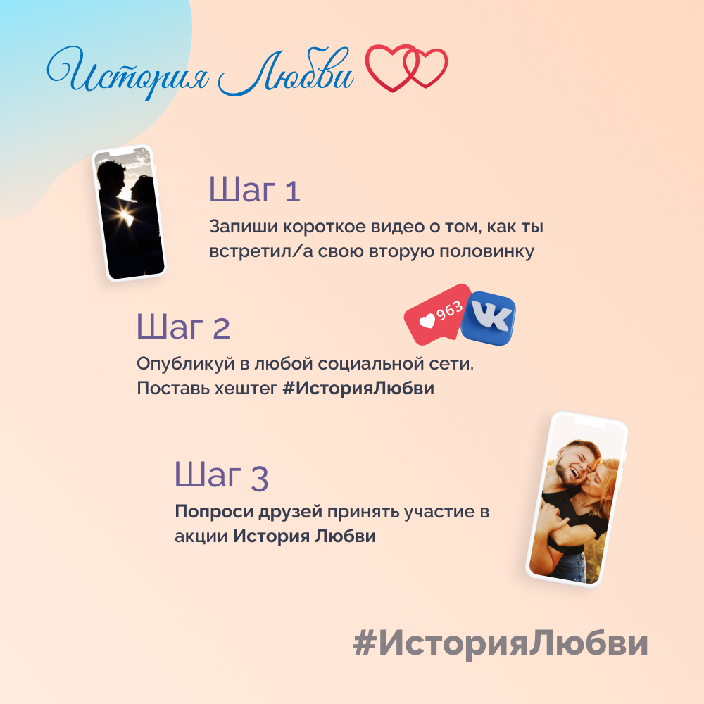 Шаг 2. Опубликуй в любой социальной сети. Поставь хештег #ИсторияЛюбви