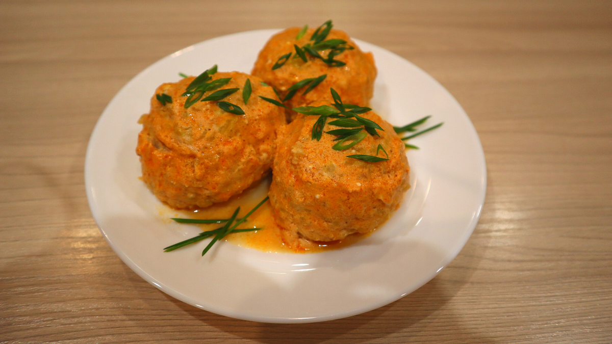 Для приготовления нам необходимы продукты: 1) Рис белый, любой – 80г. 2) Капуста белокочанная – 200г. 3) Лук репчатый – 1шт. (среднего размера). 4) Морковь свежая – 1шт. (среднего размера). 5) Чеснок свежий – 3 зубчика. 6) Фарш куриный – 500г. 7) Яйцо куриное – 1шт. 8) Соль – по вкусу. 9) Перец чёрный – по вкусу. Для соуса: 1) Сметана 20% - 200г. 2) Томатная паста – 1ст.л. 3) Вода-очищенная – 100мл. 4) Соль – по вкусу. 5) Перец чёрный – по вкусу. Пошаговый рецепт: На 120мл. воды добавляем промытый белый рис, доводим до кипения, накрываем крышкой и даём настоятся 10мин. Шинкуем белокочанную капусту и замачиваем в кипятке на 3-5мин. Нарезаем репчатый лук кубиком и натираем морковь на крупной части терки. Обжариваем на сковороде с небольшим количеством растительного масла. Капусту обязательно освободить от воды! В тару добавляем фарш у меня куриный, яйцо куриное, выжатую капусту, обжаренный лук с морковью, настоявшийся рис, мелко нарубленный свежий чеснок, соль и перец чёрный по вкусу. Вс