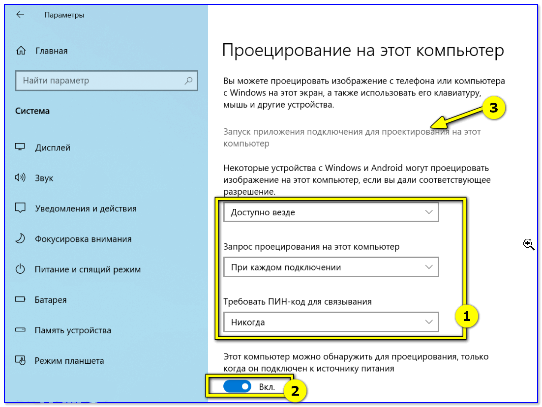 Итак, вам вдруг понадобилось видеть что происходит на экране другого компа или подключить второй компьютер в качестве моника, а кабеля нет. Использовать мы будем встроенную в windows 10 утилиту. Заходим в настройки-система-проецирование на этот компьютер. если не можете скачать то загружаем Затем идем за компьютер с которого будем транслировать изображение и нажимаем win+p под цифрой 1 дублирование, под цифрой 2 вы получите второй монитор. Нажимаем "подключиться к беспроводному дисплею" выбираем и радуемся) первый и третий скрин брал с: https://ocomp.info/