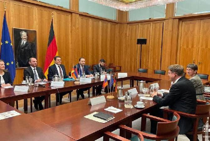Как сообщили «Арменпресс» в МИД РА, в ходе консультаций стороны обсудили широкий круг вопросов армяно-германской двусторонней политической повестки, подчеркнули активизацию политического диалога на высоком уровне, коснулись реформ правовой системы в Армении, торговли, экономики, образования, культуры, перспективы дальнейшего углубления сотрудничества в науке и других сферах, а также текущие программы в политике развития и гуманитарной сфере.