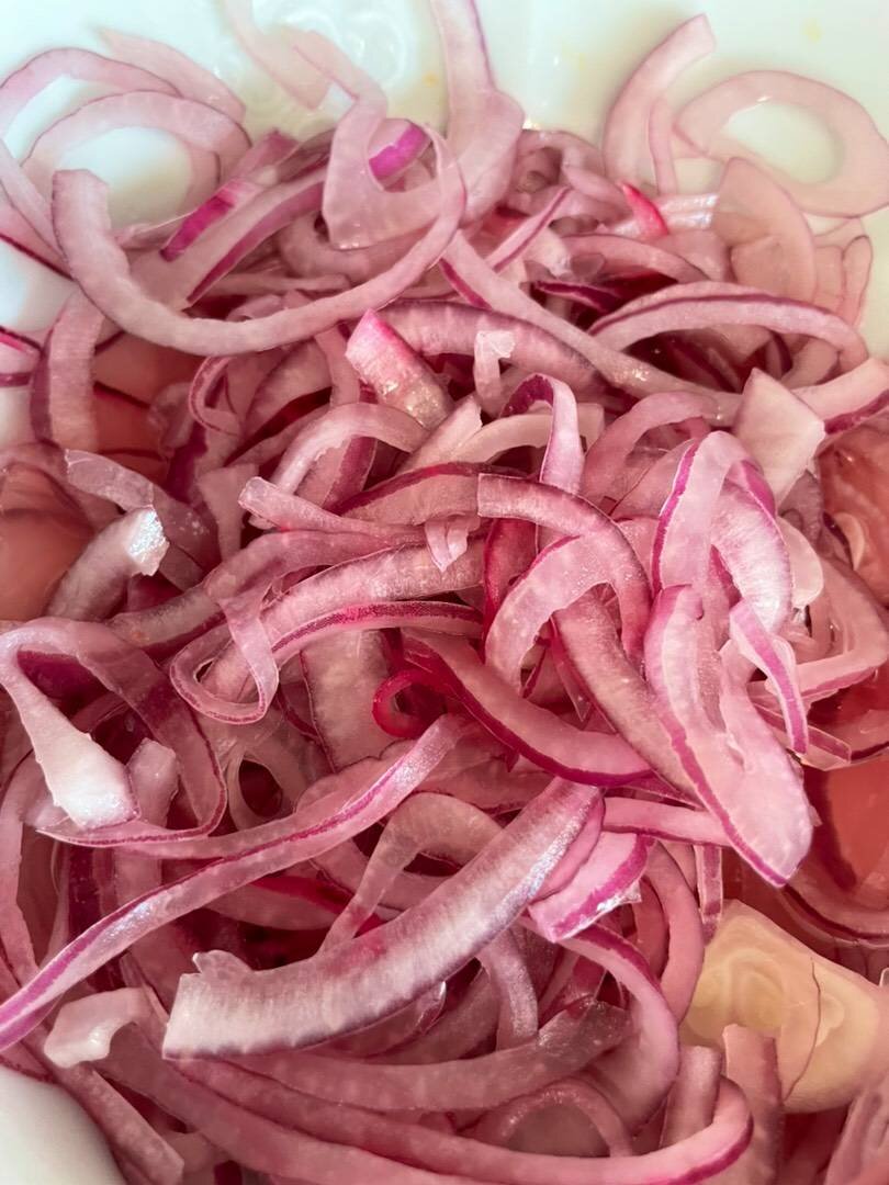 Маринованный лук – это универсальная закуска. Такой лук подают к шашлыкам, добавляют в салаты, в шаурму и во многие другие блюда. Основной минус сырого лука – это его острый и горький вкус, поэтому рецепт маринованного лука всегда актуален. #кукпадготовит #пятница Ингредиенты: Лук красный большой, соли, сахара, яблочного уксуса Способ приготовления: Лук очистить и нарезать кружочками или полукольцами. Добавить соль и сахар! Перемешать, добавить уксус ! Оставить мариноваться 30-40 минут при комнатной температуре, затем на час в холодильник! Лук к употреблено готов! Приятного аппетита 🤗