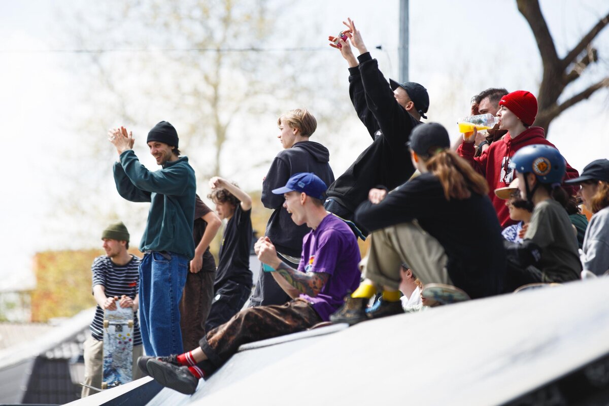 Две недели мы катали с командами Social Skate School и сборной России по скейтбордингу в наших южных краях. Все райдеры — молодые парни и девушки из разных городов, каждый со своей историей, простой или сложной. Их объединяет понимание, что они хотят связать свой путь с доской. Когда погода благоволила, боуловые райдеры ловили солнце на бетонных волнах Юбилейного. В это время стритовая команда оттачивала соревновательные навыки на олимпийской площадке — для этого их ждала SLS плаза в Вишняках. Там они вместе с тренерами откатывали попытки для контестов, снимали их на видео, а затем разбирали ошибки и дорабатывали свои линии. Общими локациями для обеих команд стала еще закрытая площадка рядом с ЖК, где ребята развивали выносливость на дорожке памп-трека, и парк на Слоне, где они скользили по граням в тени деревьев. По вечерам ребята смотрели лучшие мировые соревнования, а в дождливые дни свои двери открывал наш боул «Alvar Aalto bowl». За это время мы провели ребятам экскурсию по к