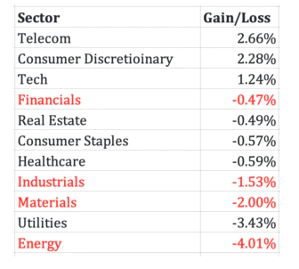 В начале этой неделе мы снова увидели знакомую картину: циклические акции упали больше всего, а защитные акции показали наименьший минус. Во вторник это было так (циклические сектора выделены красным цветом):