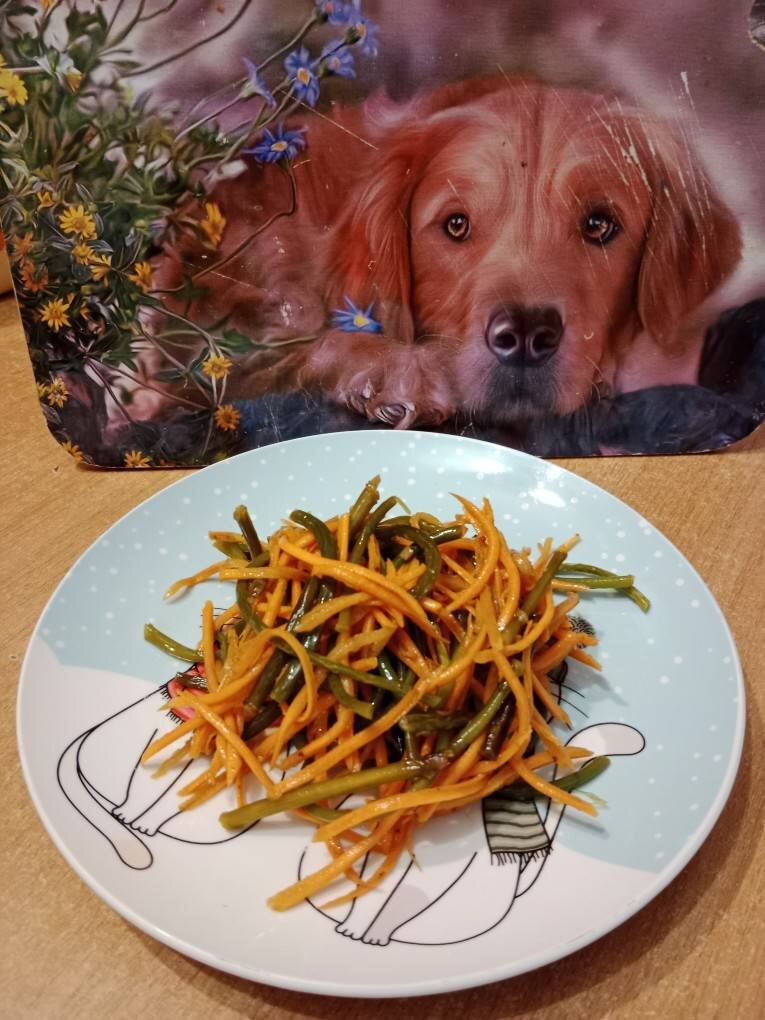 Чесночные стрелки для этого рецепта берутся нежные, так сказать, молочной зрелости, у таких стрелок бутон только начинает завязываться и при легком надавливании стрелка чеснока с хрустом ломается. Ингредиенты: Чесночных стрелок, Моркови, Соевый соус, Сахар, Масло подсолнечное , Приправа для корейской моркови, Уксус 9% Способ приготовления: Чесночные стрелки вымыть, срезать с них головки и нарезать кусочками шириной 5 см. Воду довести до кипения, стрелки варим минут 5. После стрелки выложить в дуршлаг и охладить под холодной водой. Выложить стрелки на сковороду с разогретым маслом и обжариваем минут 10. После остудить. Морковь очистить и вымыть. Натереть на тёрке для корейской моркови. В миску выложить остывшие чесночные стрелки, морковь, сахар, соевый соус, уксус, приправу. Хорошо перемешать. Убираем в холодильник часа на 3. При подаче можно посыпать кунжутом. Приятного аппетита.