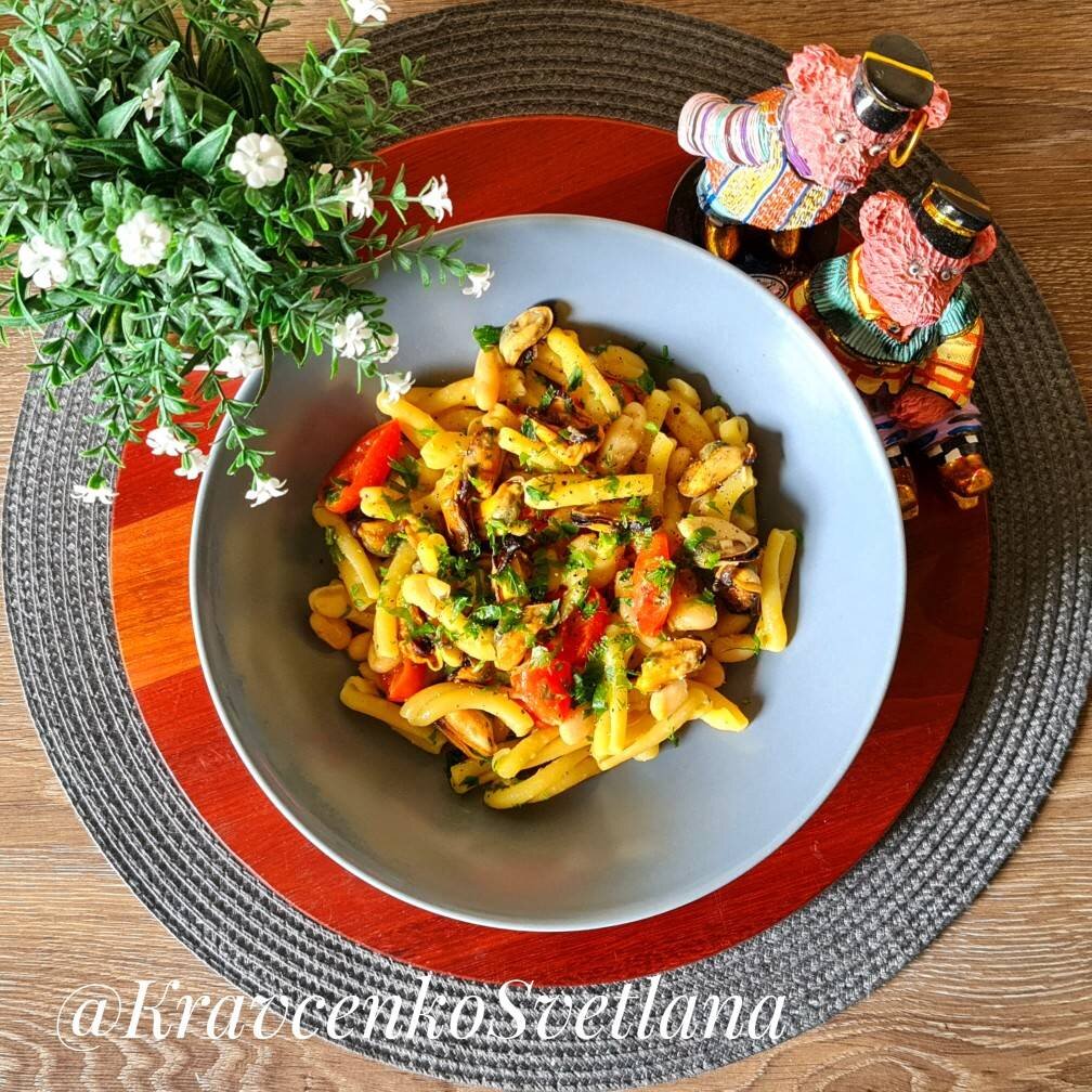 #четверг Рыбный день - это необязательно рыба, сегодня паста неаполитанской кухни с мидиями, это очень вкусно. Ингредиенты: паста (любая короткая), мидии, отваренная или консервированная фасоль, помидоры черри, чеснока, петрушка, соль, чёрный перец, оливковое масло Способ приготовления: В сковороде обжарить чеснок на оливковом масле. Добавить фасоль и помидоры черри разрезанные пополам, обжарить пару минут. Добавить пасту и немного кипятка (ровно столько, чтобы паста могла свариться), немного посолить. Готовить на небольшом огне до готовности пасты. За пару минут до готовности добавить мидии. Выключить и посыпать мелко нарезанной петрушкой. При подаче полить немного оливковым маслом и поперчить. Приятного аппетита!