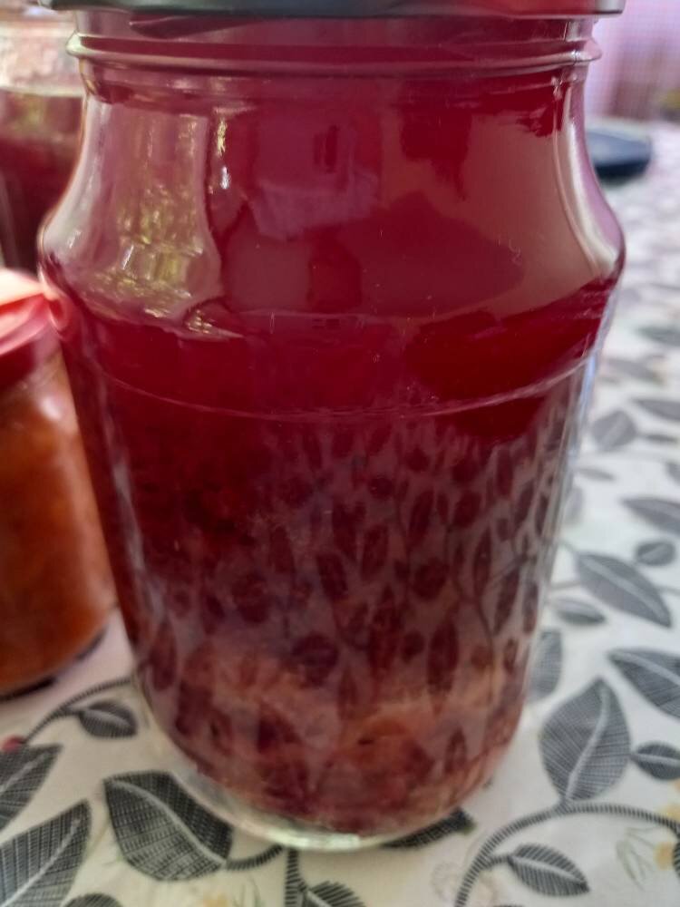 Конфитюр очень интересный по вкусу: лёгкий привкус мяты и сливочность банана оттеняют терпкий вкус крыжовника. Этот конфитюр хорошо подходит к блинам, мороженому, гренкам, сырникам. Ингредиенты: Крыжовник , Сахар , Желатин , Вода , Мята (листья), Банан Способ приготовления: Собрать крыжовник, вымыть и почистить его от веточек. Крыжовник и мяту размолоть блендером или провернуть через мясорубку, смешать с сахаром. Поставить на 2-3 часа в холодильник. 2 пакетика желатина залить 2 стаканами воды, оставить на 40 мин. Затем подогреть, но не кипятить. Крыжовник достать из холодильника. Добавить желатин. На сильном огне довести до кипения, затем убавить огонь и варить на маленьком огне 5 мин., снимая пенку. Тонко порезать бананы. Добавить их к крыжовнику и варить ещё 3 мин., снимая пенку. Разлить конфитюр по простерилизованным банкам и закрыть. Перевернуть банки, дать им остыть. Убрать в тёмное прохладное место.