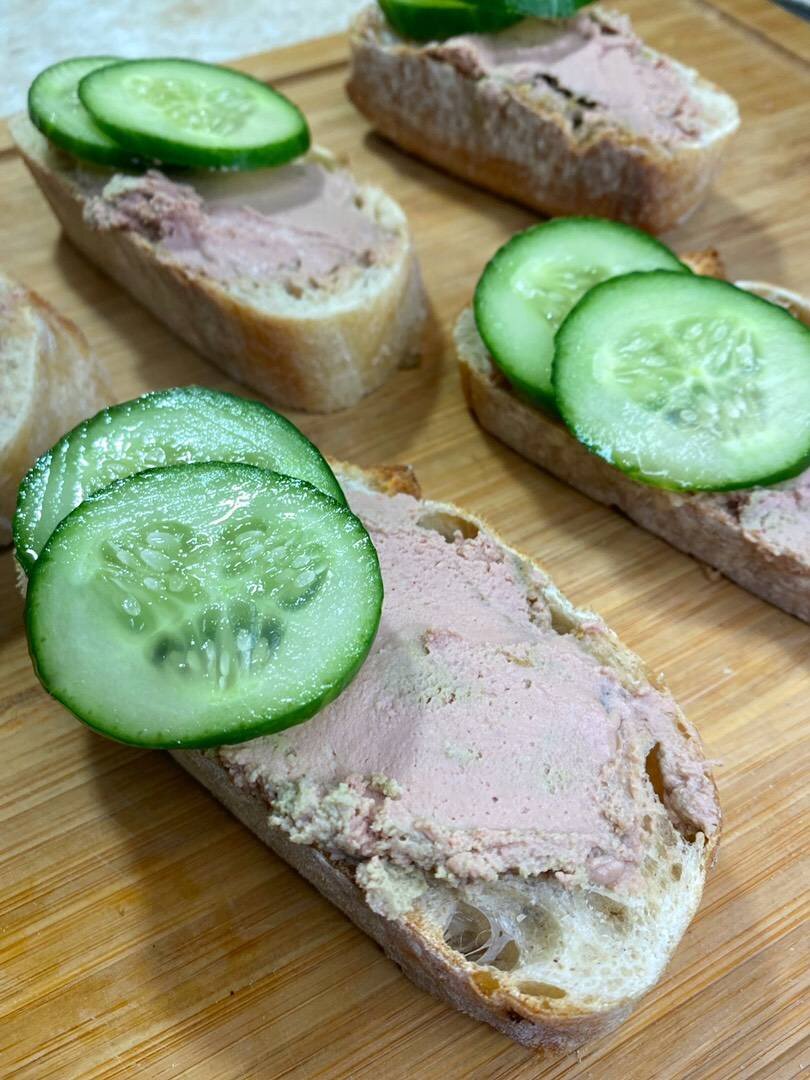 Рецепт взяла у шеф-повара Анна Рэй, у которой есть группа VK. Мне понравилось и тут делюсь, у неё кстати есть другие рецепты классные. Получается очень нежный паштет, обязательно добавляйте ром и коньяк к луку, он добавляет характерный привкус. Лук придает приятный сладкий вкус, можете добавить его немного меньше по желанию. Может быть в следующий раз я добавлю немного меньше. Сливки лучше брать как можно жирнее, но я взяла 10 % и у меня все тоже получилось. Мне понравилось вкусовое сочетание с протёртой клубникой с сахаром, клубника имеет сладко-кислый вкус и очень подходит паштету. При выпечки я добивалась того , чтобы внутри запеченного паштета была температура 80°. Ингредиенты: Куриной печени, очищенной от прожилок, Большая луковица, Ром или коньяк, Сливки, Мягкое сливочное масло, Яйцо, Чеснок , Соль , Тимьян, Чиабатта, Овощи или Ягодное варенье Способ приготовления: Лук нарезать и чеснок тоже, обжарить на растительном масле, или растительное сливочное масло. Нужно его потушить мож