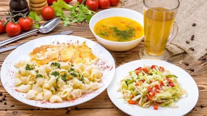 Завтрак | Обед | Ужин | Первые блюда | Вторые блюда | Бутерброды Десерты | Выпечка | Гарниры | Закатки | Закуски | Блюда из птицы | Блюдо из рыбы | Блюда из мяса | Салаты | Напитки | Блюда на праздник | Продукты питания | История блюд Сколько себя помню хозяйки всегда готовили хороший и полноценный обед состоящий из трех блюд: первое блюдо, гарнир и напиток какой-то или десерт. Некоторые переживают за то, что три блюда это очень много и можно просто переесть. На самом деле если есть понемногу переедания не случится. Я предлагаю комплексный обед состоящий из трех блюд: легкий супчик, гнезда из макарон с мясом и запеченное яблоко. Легкий куриный супчик Продукты, которые Вам понадобятся для приготовления первого блюда: Шаг 1. Берем курицу и помещаем в кастрюлю. Затем заливаем холодной водой. Добавляем соль и перец по вкусу. Другими словами варим из этой курицы бульон. Шаг 2. Берем картофель, очищаем ее и варим вместе с куриным бульоном. После того, как картошка будет готова достаньте ее и