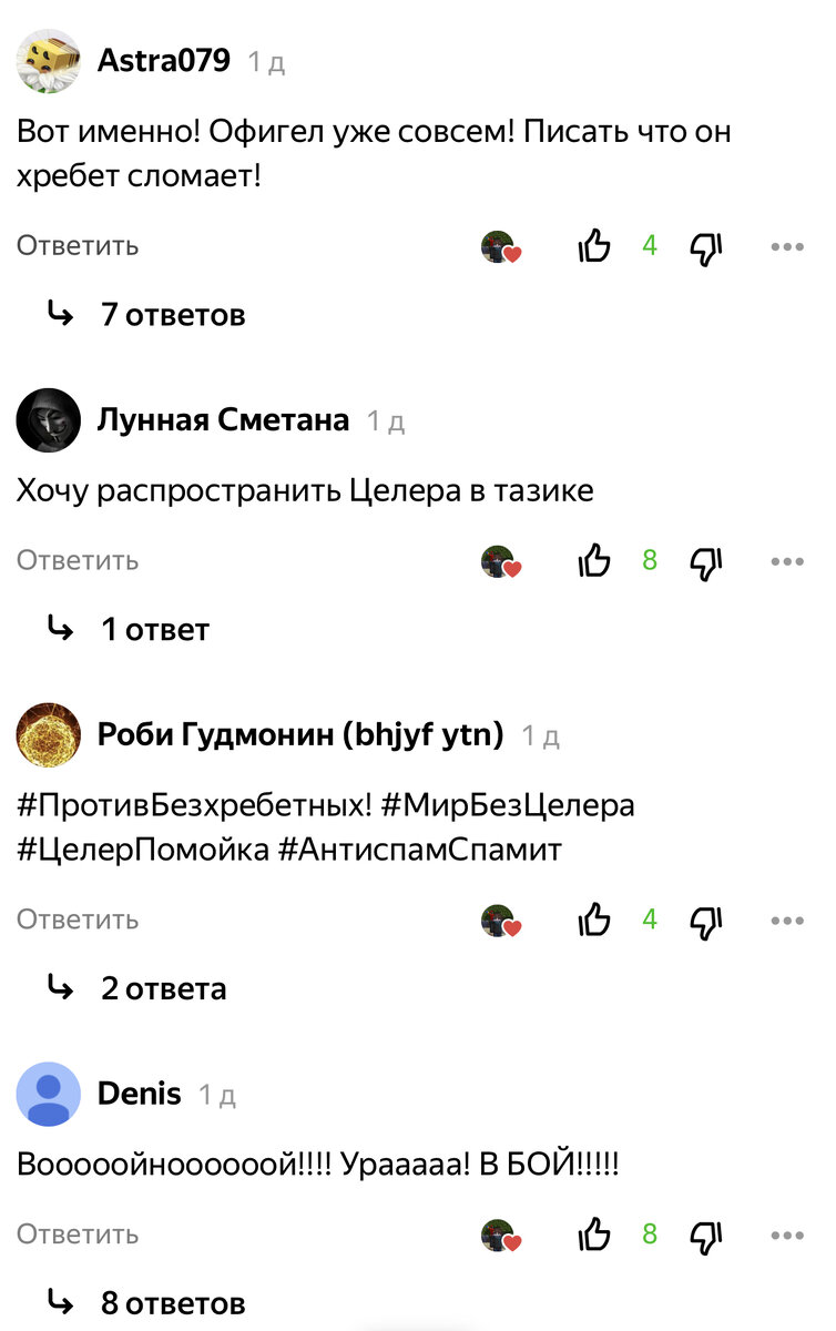 Всем Дмитон, с вами ку. Знаете, вот есть неадекваты, которые сами не понимают, о чём говорят. Почти все люди в данном списке ими и являются. Ржака юморная кнш их читать. Ну, летсгоу Итэк, Астра, самый главный пострадавший. Ответы - перепалка между нами. Лунная сметана. Скорее всего рофлер. Ответы - FireDragon, пишет, что Целеру место в мусорке. На что ведутся люди… Робин Гудмонин, и вам гуддей. Типичный чел, под комментариями, который повёлся на шизу Фикуса. Ответы - Астра пишет «спасибо», а Робин отвечает пожалуйста. Интересный диалог. Дальше идёт Ден, который видимо, очень любит перепалки. Ответы - какая-то ху*та между майндэшем и этим челом Артём Белк, чел, который шизанулся, и «стал нейтралом, но на стороне Фикуса». Ответы - Кэт, который поменял своё мнение Дальше Сосуд. К нему я отношусь позитивно, и он оказался нейтралом. Ура :) Дальше Слизняк, который просит рассказать о ситуации. Ответы - Романофф, который рассказал про триаду; и Астра, со своим «хочетсломатьхребет» Ну и Саш,