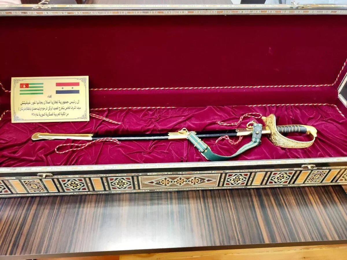 Семейная реликвия была подарена президенту Абхазии во время его официального визита в Сирию в 2021 году. СУХУМ, 8 июл - Sputnik. Шпага генерал-майора сирийской армии Уалида Маршан отныне станет экспонатом Абхазского госмузея, президент Аслан Бжания передал ее в дар музею в пятницу, 8 июля, сообщает пресс-служба главы государства. Семейная реликвия была подарена президенту Абхазии во время его официального визита в Сирию в 2021 году. Шпагу преподнес главе государства сын генерала - Халид Маршан. Вручая подарок, он отметил, что шпага была при Уалиде Маршан, еще когда он окончил военную Академию, и для родных важно, чтобы реликвия находилась на исторической родине генерала. От имени президента холодное оружие абхазского аристократического рода Амаршан передал директору музея Аркадию Джопуа советник по науке и культуре Нугзар Логуа. "Убежден, шпага займет свое почетное место в музее, который является центром притяжения абхазской культуры", - сказал Логуа. Больше новостей Абхазии читайте зд