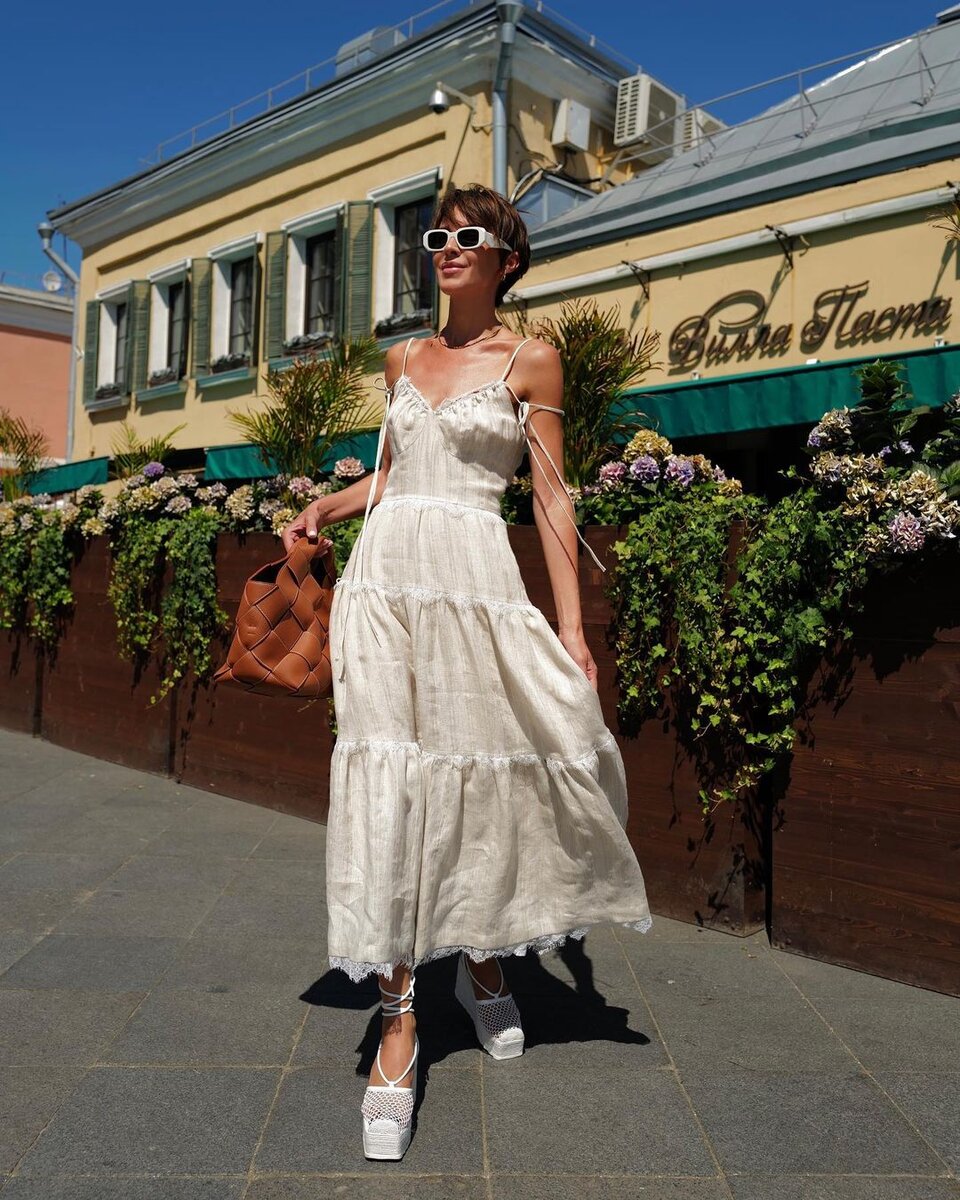 Сарафан в жаркую погоду совершенно незаменим. Среди разнообразия фасонов и расцветок можно потеряться, ведь каждый год дизайнеры создают новые модели, дополняют классику современными деталями. Итак, разбираем самые актуальные сарафаны сезона на примерах образов модных блогеров. Сарафан на тонких бретелях + белоснежные босоножки + компактный аксессуар – стиль и комфорт в одном флаконе! Ансамбль в светлых тонах освежает внешность женщины, выгодно подчеркивает благородный загар. Сарафан с диагональным принтом стройнит, добавляет образу утонченности. Удобные шлепанцы станут удачным завершением летнего сета. Сарафаны часто дополняют интригующими деталями в виде вырезов, которые обычно находятся в области талии. Модель длины миди отлично ладит с босоножками с тонкими ремешками. Многоярусный сарафан с геометрическим рисунком – настоящая палочка-выручалочка для стильных и активных модниц. Чтобы добавить изящности женскому силуэту, можно подчеркнуть талию поясом. Летнему гардеробу не помешает д