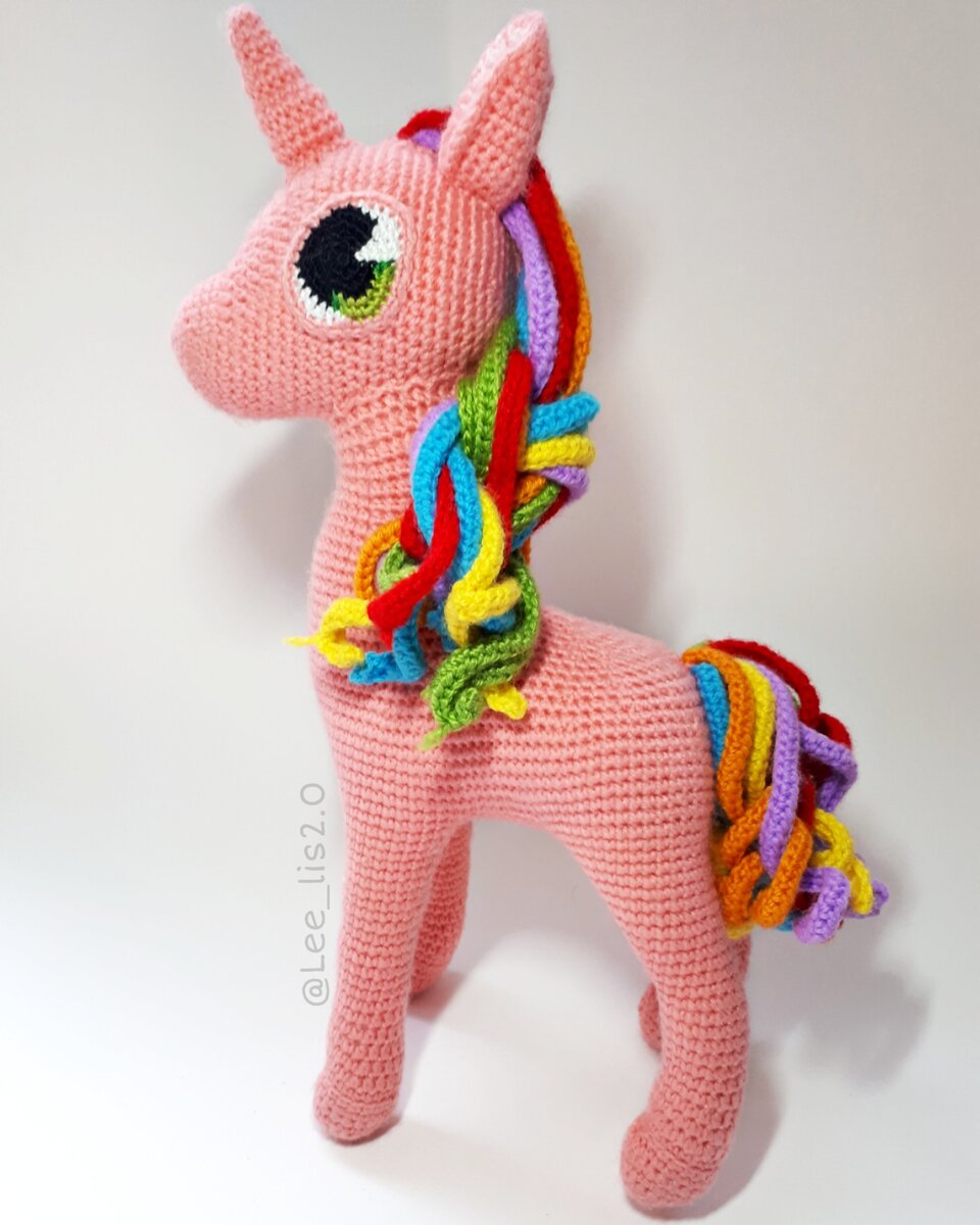 Всем привет! Сегодня покажу одну из самых любимых своих работ. Красавица с разноцветной гривой. Можно сделать и без рога. Ростом вышла 33 см,ни на одну полку не влезает😂 Вязать ее было одно удовольствие:) А эти глаза😍 А вот так единорог выглядел до преображения:) Дочка тогда сказала что это "лама",а по мне так он больше похож на беззащитного олененка☺ Всем хорошего дня!