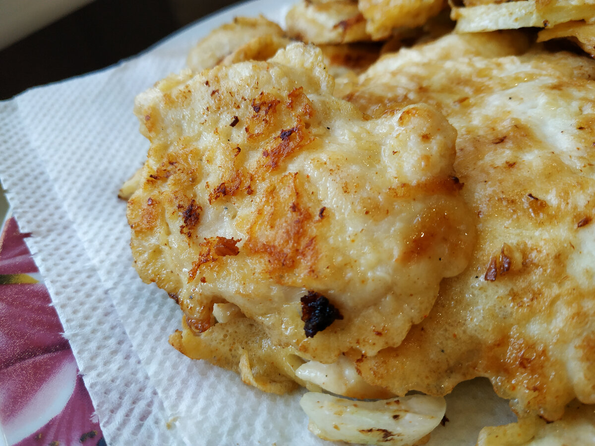 Обмакиваем в кляре каждый кусочек, и обжариваем их. Получается вот такая красота.