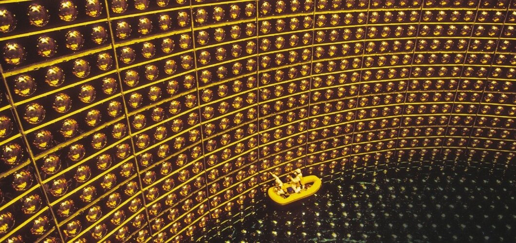 Фотография перед текстом: Японские ученые в нейтринном детекторе Супер-Камиоканде. Источник: Heise Magazine