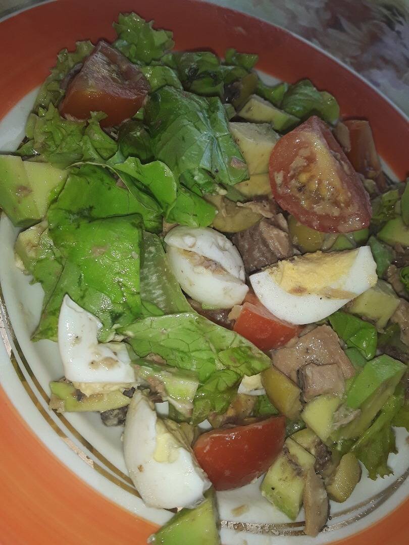 Салаты с консервированным тунцом готовят по разным рецептам. Это зависит от личных предпочтений кулинара и наличия необходимых продуктов. Я предлагаю попробовать вкусный салат с тунцом в итальянском стиле - с помидорами черри, оливками и орегано. Заправим салат оливковым маслом - получится отличное блюдо хоть на каждый день, хоть на праздничный стол. Консервированный тунец для этого салата подойдет как натуральный, так и в масле. В этом случае оливковое масло можно не добавлять или просто сократить его количество. Сладкие помидоры черри можете заменить простыми томатами, зеленый листовой салат - хрустящим Айсбергом, перепелиные яйца - куриными (хватит 4 штуки). Орегано используем по вкусу или по желанию приправляем салат прованскими травами. #суббота Ингредиенты: консервированный тунец, перепелиные яйца, помидоры черри, оливки, огурец, салат, орегано, соль Способ приготовления: Рыбные консервы (а именно консервированный тунец - 250 граммов) вынимаем из банки и разделываем (удобнее всег
