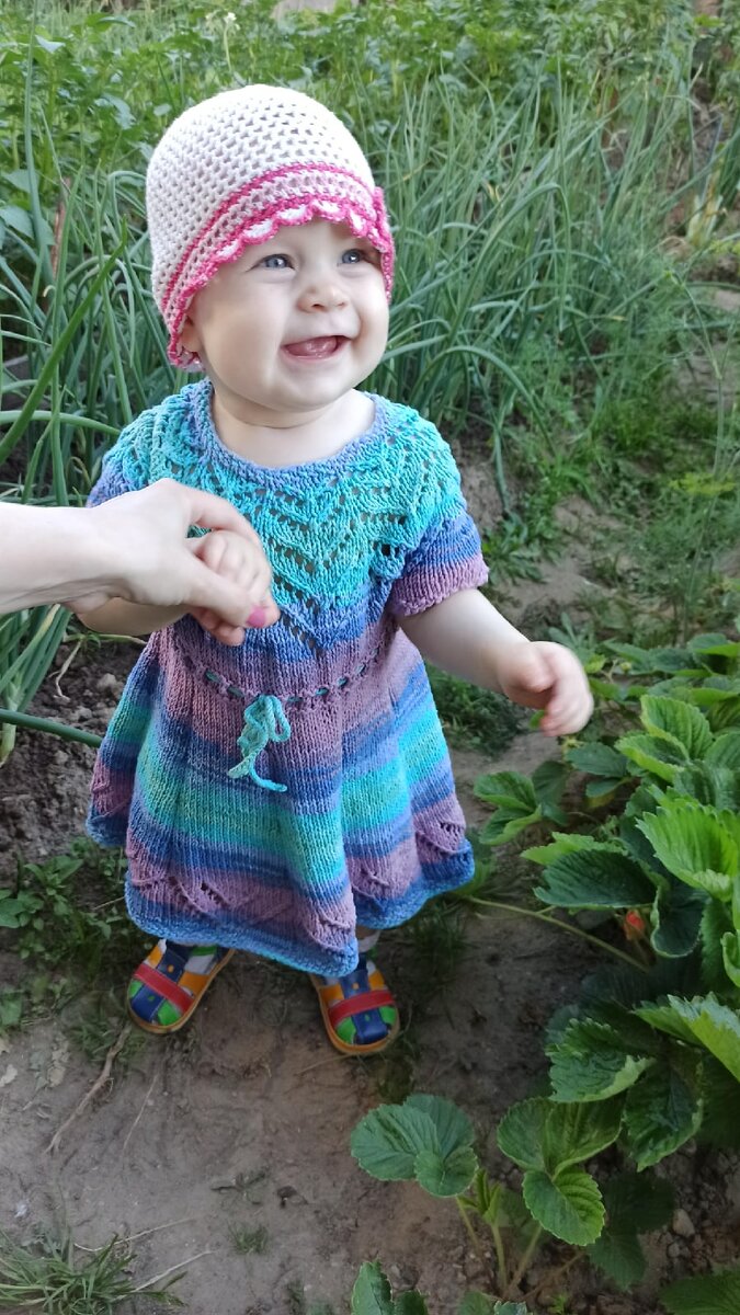 Детское летнее платье на круглой кокетке спицами. Описание вязания.