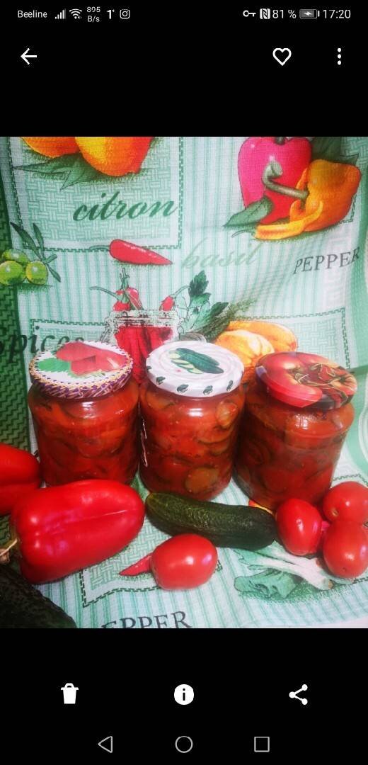 Лечо из 🥒 огурцов с помидорами 🍅 и болгарским перцем 🌶️ Лечо из огурцов я готовлю не первый год. Эту закуску любят все. По крайней мере, я еще не встречала в своем доме гостей, которые отказались бы от нее☝️ 🍅🥒🍅🥒🍅🥒🍅🥒🍅🥒🍅🥒 〽️ Ингредиенты: Огурец 🥒 , Помидор 🍅 , Болгарский перец🌶️ , Сахар 🍚, Соль🧂 , Растительное масло🍶 , Уксус 🥛9% , Чеснок🧄 Способ приготовления: Помидоры🍅 измельчить🌪️ через мясорубку или блендер🧉 и вылить в кастрюлю с толстым дном.🍲 Болгарский🌶️ перец очистить, помыть и нарезать полосками. .Мелкие🤏 огурцы🥒 нарезать кружочками, крупные ✊– полукольцами🌓 В кастрюлю с томатной массой🍲 добавить перец🌶️, сахар🍚, соль🧂, растительное масло🍶 и чеснок🧄, пропущенный через пресс👊. Перемешать🍥, поставить кастрюлю на огонь🔥, довести до кипения. Уменьшить огонь, накрыть кастрюлю крышкой и варить 10-15 минут🕕. Высыпаем огурцы🥒, вливаем уксус🍶, перемешиваем🍥. Доводим до кипения🔥, потом огонь уменьшаем, накрываем кастрюлю крышкой и готовим 5-6 м