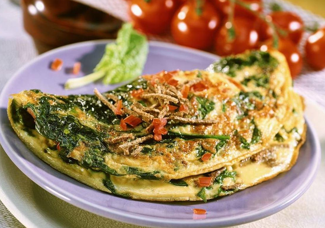 Рецепт, который по ингредиентам пугает новичков. Однако, в нем нет ничего вредного. По калориям вполне приемлемо – 286 Ккал одна порция. По БЖУ – 19/21,6/3.8. Время готовки – 15-20 минут. В итоге – отличный завтрак. Овощи с белком отлично заряжают на весь день. После такого перекуса чувство голода не возникнет очень долго. По желанию, можно сделать скрамбл и добавить любые мелконарезанные печеные овощи сразу в него. Рецепт ограничен только вашей фантазией. Но, напоминаю: сахар, крахмал, мука, продукты с высоким гликемическим индексом – лучше избегать. Ингредиенты: Готовим: Соединяем яйца, соль, специи, зелень. На средней сковородке разогреваем каплю масла и вливаем яичную смесь. Не мешаем – ждем пока получится блинчик. Измельчаем овощи. Пассируем шпинат. И обжариваем начинку в течение 5-7 минут. Выкладываем овощи на половину омлета. Посыпаем тертым пармезаном. И формируем тортилью. Что мы получили? 286 Ккал – это отличное начало дня для человека с любым весом. Единственное в соотношени
