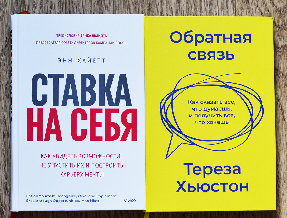 Я очень хочу работать. Дочка растет, становится самостоятельнее, и мне хочется вернуться в офисную жизнь. В удаленном формате свои плюсы и минусы, но я мечтаю уже достать деловые туфли и стряхнуть пыль с костюмов. Пока идут поиски работы, я решила сменить фокус с чтения книг по саморазвитию и воспитанию детей на рабочие процессы. Выбрала две новинки МИФа: Энн Хайетт «Ставки на себя. Как увидеть возможности, не упустить их и построить карьеру мечты» и Терезу Хьюстон «Обратная связь. Как сказать все, что думаешь, и получить все, что хочешь». Автор книги «Ставки на себя. Как увидеть возможности, не упустить их и построить карьеру мечты» Энн Хайетт работала на Amazon и Google. Интересно получить советы от человека такого уровня. Но книга меня разочаровала. Возможно, она подойдет молодым людям без семьи. По большому счету автор рассказывает про свой опыт. Вся книга в стиле лозунгов: работайте больше, работайте усерднее, помогайте своему начальству и коллегам, участвуйте в значимых проектах