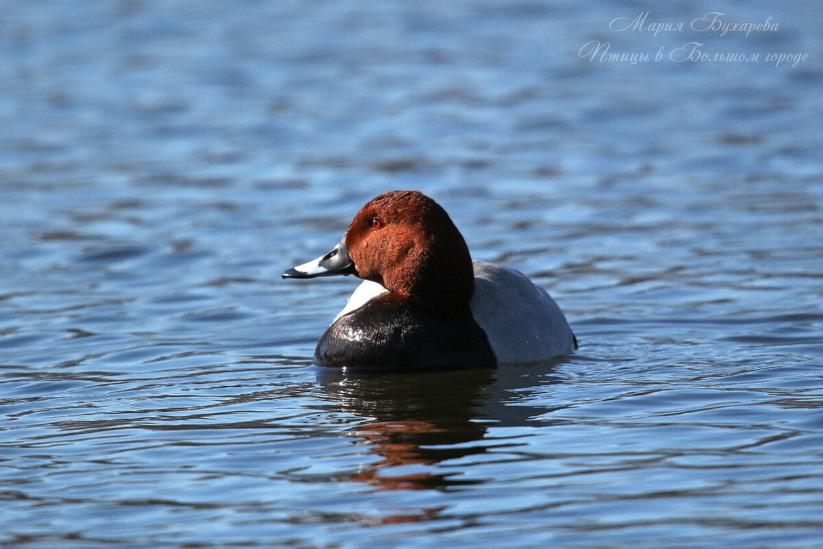 20-е апреля 2022-го года. Я гуляла по Петергофу и в какой-то момент решила отдохнуть у Красного пруда. В те дни там отдыхала не только я, но и целая стая красноголовых нырков: они рассредоточились по всему пруду, некоторые подплывали даже довольно близко к берегу. Для того, чтобы сфотографировать птицу крупным планом, мне пришлось долго и неподвижно сидеть, чтобы утки ко мне привыкли. Этот самец держался недалеко от спящей самки - возможно, он её охранял во время сна. Пока что это лучший кадр данного вида в моём архиве, так что буду постигать науку фотографии дальше.