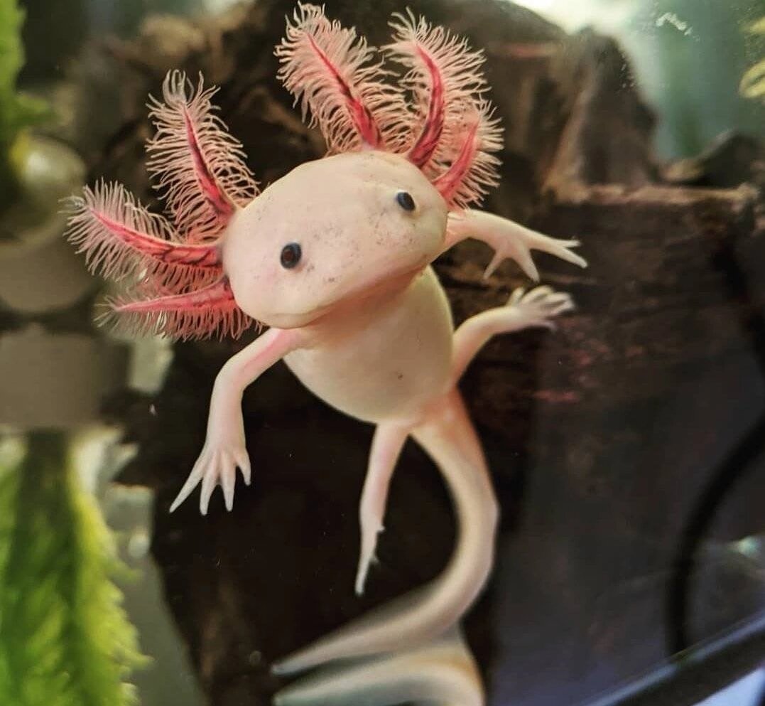 Рептилии Из рептилий в аквариумах можно содержать водных черепах. Наиболее часто встречающиеся представители рептилий — триониксы и красноухие черепахи. Следует помнить, что черепахи дышат лёгкими и часть времени проводят на суше, поэтому им необходимы островки, на которые они могут выбираться. Черепах лучше держать отдельно от рыб, так как, вырастая, они начинают на рыб охотиться и, в конце концов, рано или поздно всех съедят. Земноводные Среди земноводных популярны аксолотли, шпорцевые лягушки и тритоны. Аксолотль — это неотеническая личинка некоторых видов амбистом, которая достигает половой зрелости, не переходя из личиночной формы во взрослую. Аксолотль дышит жабрами, которые расположены снаружи тела и внешне напоминают метёлки или «мохнатые» рога. При определённых условиях аксолотль превращается в амбистому — взрослую форму. В аквариуме аксолотль практически не совместим с рыбами, так как маленьких рыб он рано или поздно съест, а крупные агрессивные рыбы могут серьёзно повредить