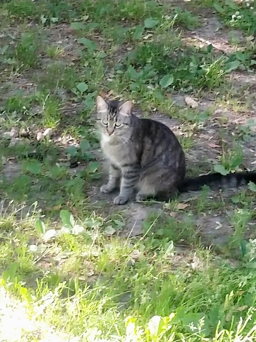 Как ни странно, все кошки очень пугливые, хотя внутри -- целые ведра с кормом. Наверное, дети очень тискали. Первая — белая с темными пятнами, сначала я увидела ее в помойке. Эта кошка самая борзая и смелая, думаю, она лидер, так как с ней все кошки здоровались. Потом Борзая пошла прямо на корги, грозно выгнув спину, хотя пес просто лежал рядом с хозяйкой) Корги вскочил и залаял, хотя он очень старенький. Эта кошка его уже не раз преследовала. Когда остальные жильцы домика играют, она хозяйски наблюдает, можно людям к остальным подходить или нельзя) Бело-рыжий кот очень пугливый, но одновременно ему хочется играть. Он может носиться за веточкой, а потом неожиданно испугаться и убежать, он боком наскакивает на травинку и отскакивает. Глазки в кучку, особенно когда смотрит вверх и пытается уследить за веточкой. У другой кошки очень длинные лапы, поэтому прыгает как лань, но поджимает лапку. Она очень ловкая и вертлявая. Кошка ходит между столами в ресторане и выпрашивает еду.