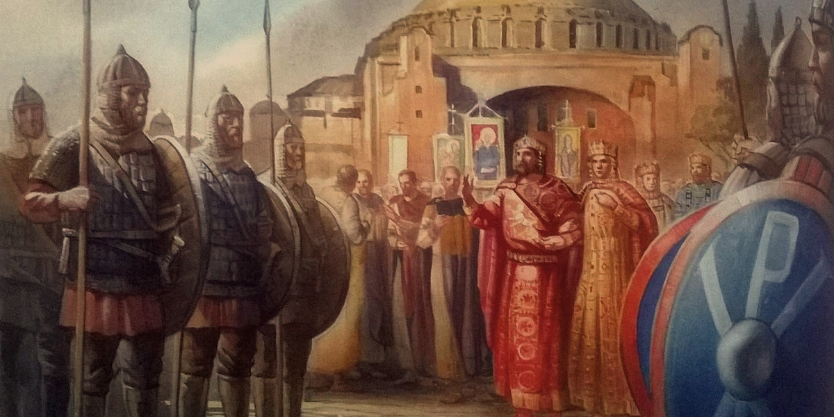 Церемония коронации в Византийской империи является прямой наследницей соответствующей церемонии в Древнем Риме, когда перед только что коронованным императором склонялась армия и гвардия. Милитаристский оттенок церемонии, в качестве основополагающего аспекта коронации, сохранится вплоть до 6 века, однако в этот период в традицию коронации вклинивается религиозный аспект, связанный с Константинопольским патриархом. Отныне успешная коронация не могла и представиться без благословения патриарха. С этой поры, именно священнослужитель возлагал корону на императора. Однако, через несколько столетий, снова складывается образ императора как всемогущего и самодостаточного повелителя, и теперь император короновал себя сам. Это совпало с переносом проведения церемонии из Константинопольского ипподрома в собор Святой Софии с середины 7 века. Благодаря этим двум изменениям для всех должно было стать очевидным, что император назначается непосредственно Богом, без посредника в виде патриарха. Тре