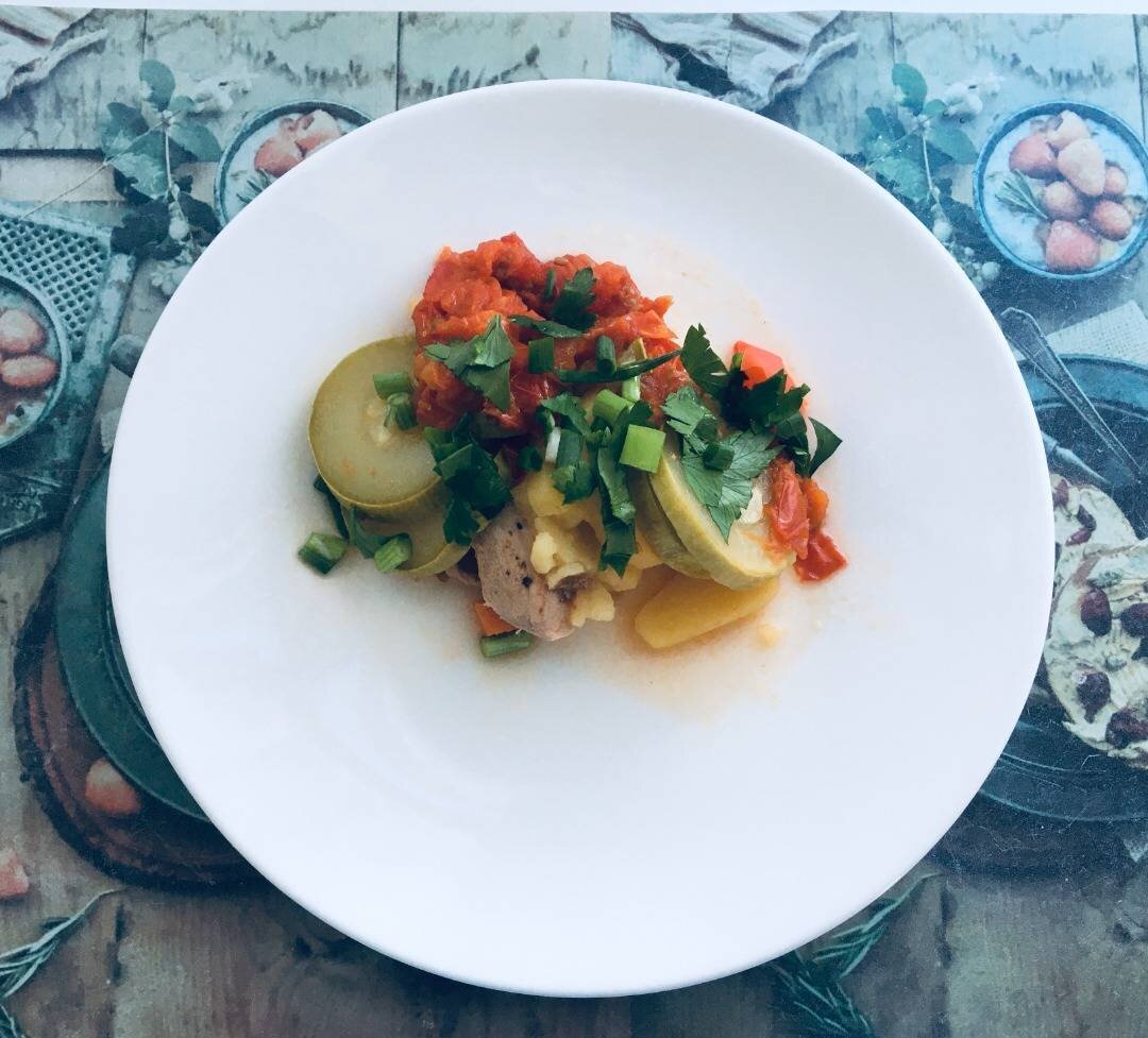 Ингредиенты: – лук репчатый, – морковь, – картофель, – чеснока, – курица (индейка, свинина), – кабачок, – болгарский перец, – помидоры (можно протертые или в собственном соку), – растительное масло, – специи, соль, зелень