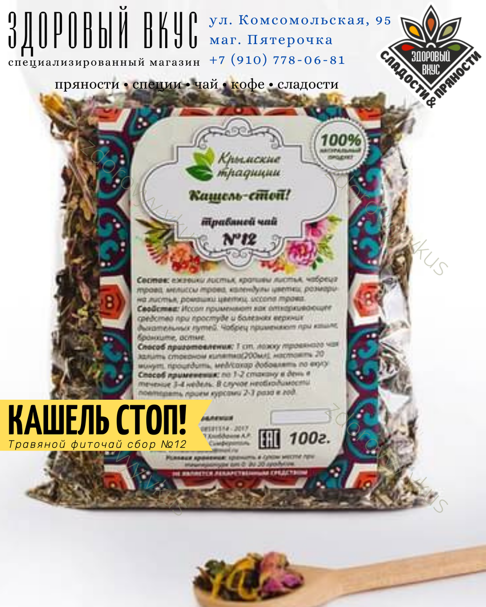 🍀 Травяной фиточай № 12 «Кашель-стоп!»