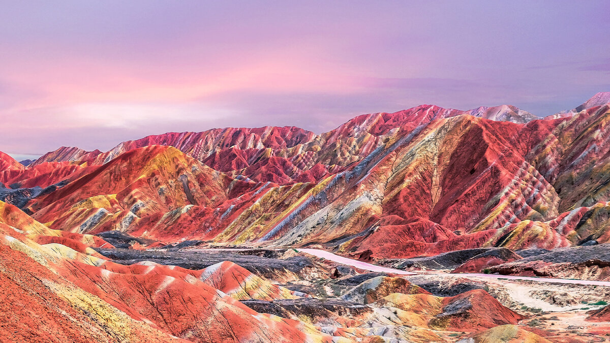 Располагаются скалы Чжанъе Данксиа в Китае, в провинции Ганьсу. Эти места объявлены Национальным парком в 2011 году, площадь которого - 510 км*2. Известным это место стало благодаря красочной и необычной окраской гор.Завораживающие переливы цветов виднеются на многочисленных холмах Национального парка. Именно поэтому туристы со всего мира стремятся попасть сюда. Конечно, есть и геологические причины появления этого чудесного места. Скалы здесь состоят из горных пород Мелового периода и красного песчаника. По официальной версии учёных, около 100 миллионов лет назад в этих местах был водоем, в который воды нанесли огромное количество ила. Под действием различных природных факторов гигантский бассейн высох, а всё содержимое его дна стало окисляться, что привело к появлению разнообразных цветов. За миллионы лет образовался пласт из красного песчаника, на вершине которого расположился слой из мелового периода. Из этого слоя и стали формироваться горы Данксиа. В 2010 году Цветные скалы