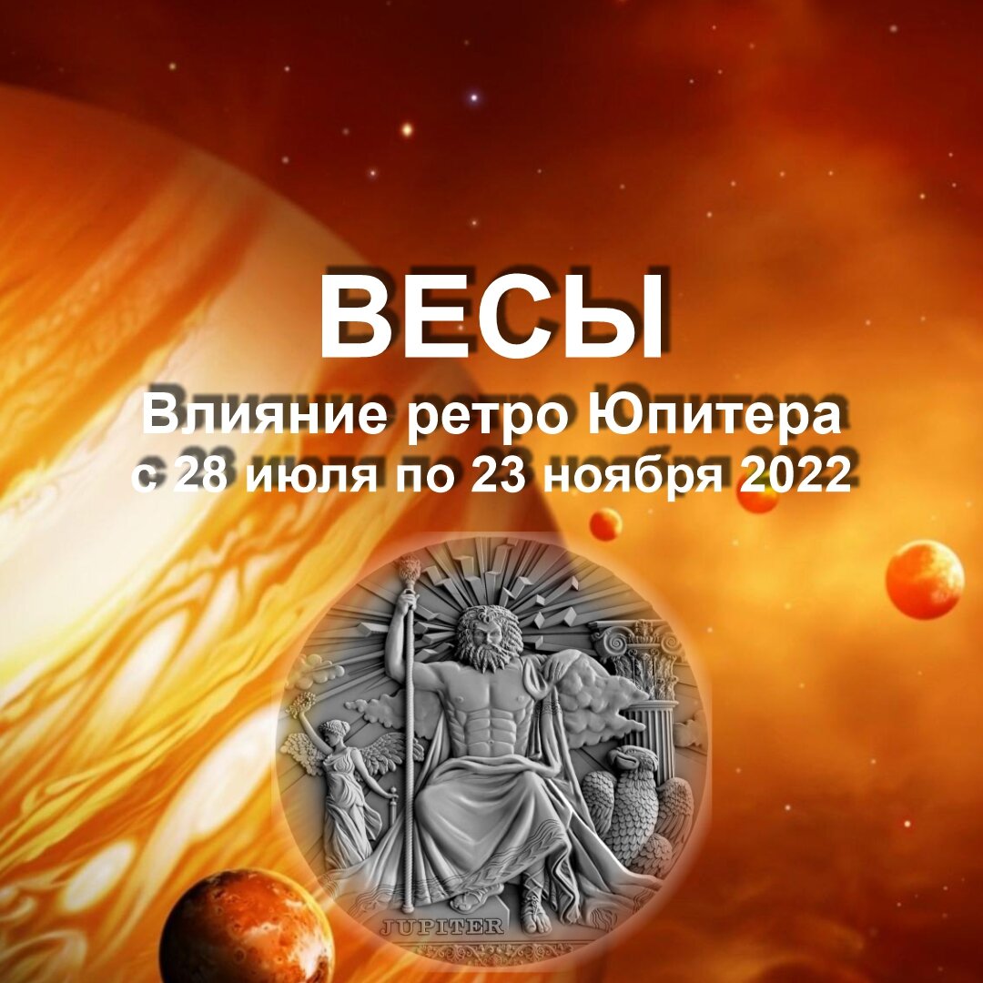 Канал ГОРОСКОПЫ ОТ АСТРОЛОГА приветствует вас! В конце июле для Весов начинается пора, наполненная покоем, тишиной, ленью, философскими измышлениями. А все потому, что с 28 июля планета большого счастья Юпитер уходит в ретроградное движение. Юпитер – главный среди планет по честолюбию, амбициозным планам, исполнению самых сногсшибательных проектов, а также больших денег, получения чинов и продвижения по социальной лестнице. В той сфере жизни, в которой стоит у вас Юпитер в натальном гороскопе, вы можете добиться наибольшего успеха в жизни. Конечно, если ваш Юпитер неповрежденный и сильный по статусу. Но в ретроградном (обратном) движении Юпитер сворачивает все эти благие намерения и перестает благотворно действовать на карьеристов, честолюбцев и любителей больших денег. Юпитер ушел в отпуск до 23 ноября. Это означает, что в ваших делах наступает пауза и приходит место философии, рассуждениям о жизни, затишью. У каждого знака зодиака есть особая жизненная область, по которой идет транзи