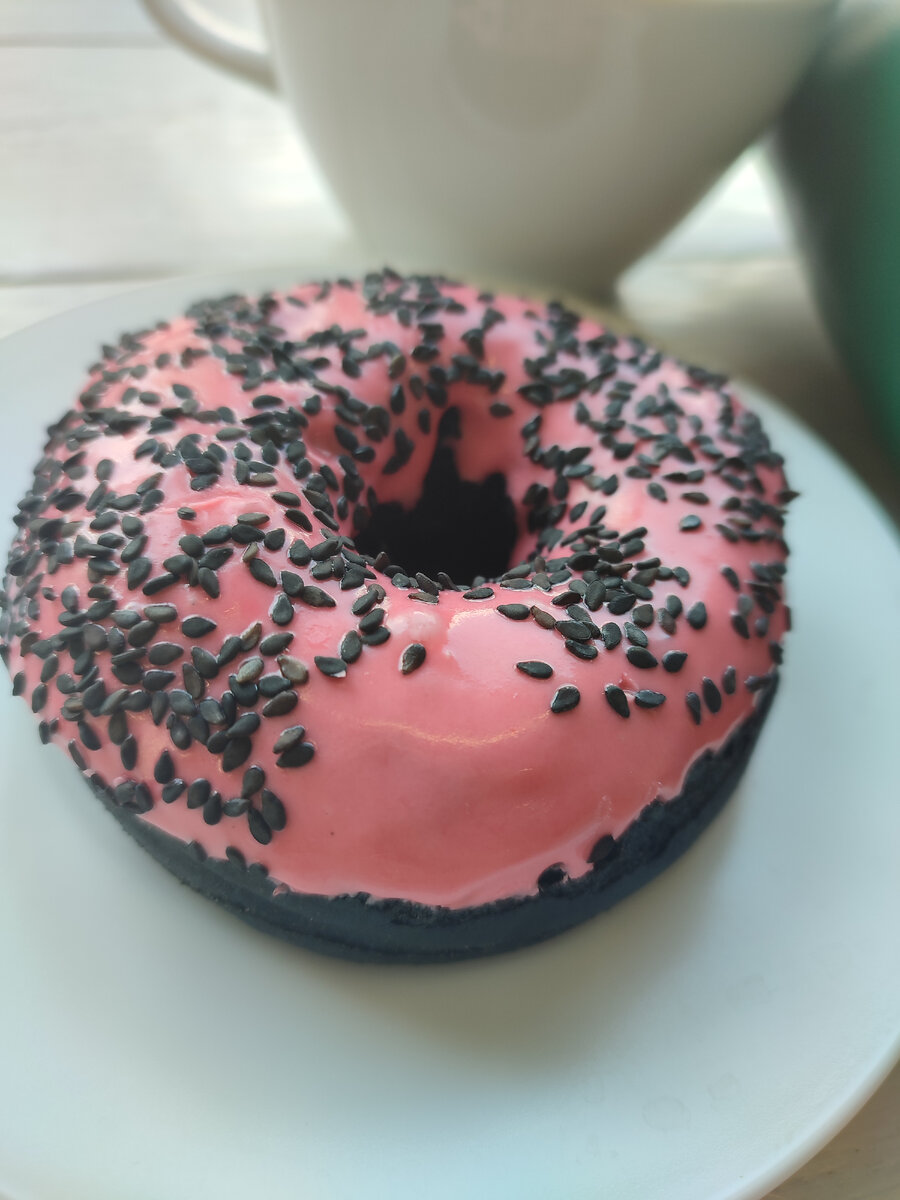 Вкусный и красивый пончик вам на завтрак. Пусть день сегодня будет так же интересен и хорош собой.