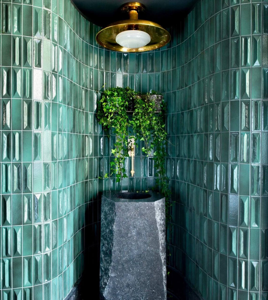 Некоторые заведения оформляют фотозону для гостей с помощью необычной плитки. Асимметричные прямоугольники подойдут и для этой задачи. Совсем не обязательно укладывать рельефную плитку по всей поверхности стены. В зависимости от дизайна интерьера, ею можно оформить вертикальную поверхность до середины или на две трети. Этот вариант отлично подойдёт для средних и небольших помещений. Объёмные прямоугольники с перепадом рельефа можно использовать в декоре более точечно. Например, сделать обрамление вок