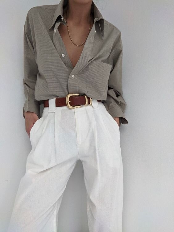 Привет, дорогие подписчики! Хорошо сидящие брюки в комплекте с рубашкой создают прекрасный элегантный образ. Рассмотрим примеры ниже Т к сейчас лето и жара будем рассматривать вещи светлых оттенков. Белые (молочные) брюки это особый шик. Тут важно найти не только хорошо сидящее изделие на Вашей фигуре, но и вещь, созданную из довольно плотного материала, который не будет просвечиваться. Конечно на помощь нам в этой ситуации приходит белье телесного цвета. Сделала подборку моделей из наших интеренет-магазинов. Брюки льняные, широкие, без стрелок с карманами боковыми. Смотреть ближе тут. Еще брюки на талии, облегающие бедра, расширенные к низу на широком поясе. Очень хорошая модель, попробуйте примерять. Посмотрите поближе модель тут Не смогла пройти мимо брюк веселого жизнеутверждающего желтого цвета. Ознакомится с моделью подробнее тут. Следующая модель, на которой хочу остановиться это укороченные брюки со складами по талии. Очень женственно смотрится эта модель. На фото ниже в черн