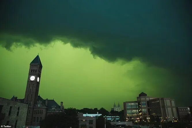 Недавно во время мощной грозы небо над Су-Фолс ( Южная Дакота ) окрасилось в зеленый. Увидеть такое явление сможет не каждый. Почему окрасилось?