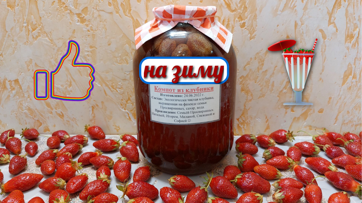 Компот из клубники не только вкусный и ароматный, но и очень полезный. Клубничный компот порадует своим клубничным ароматом, а особенно зимой! Ингредиенты: 1. Клубника - 500 грамм 2. Сахар - 400 грамм 3. Вода - 2,7 литра Способ приготовления: Промываем клубнику и отрываем хвостики Затем в хорошо промытую банку кладём клубнику Заливаем клубнику крутым кипятком. Накрываем крышкой и оставляем при комнатной температуре на 15 минут. Через 15 минут сливаем всю жидкость в кастрюлю. Клубника должна остаться в банке. Добавляем сахар Хорошо перемешиваем до полного растворения сахара. Накрываем кастрюлю крышкой. Включаем плиту на большой огонь и ждём, когда сироп закипит. Этим временем стерилизуем крышку. Кладём её в глубокую тарелку и заливаем из чайника кипятком так, чтобы вода полностью покрыла крышку. И оставляем на 2 - 3 минуты. После того, как сироп закипел, заливаем его в банку с клубникой. Клубнику надо заливать до самого верха. Теперь накрываем банку крышкой и закатываем. Перевора