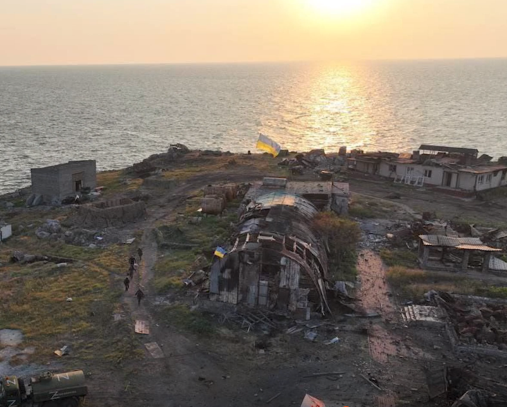 Здравствуйте, уважаемые читатели! Хочу написать несколько слов по поводу установки флагов Украины на острове Змеином военнослужащими сил специальных операций ВСУ и дискуссий на тему того, действительно ли ВС РФ произвела авиаудар по спецназовцам с потерями для последних. Вот фото, снятое с дрона после установки флагов на острове: По положению Солнца можно определить примерное время съёмки. Восход Солнца 7 июля в городе Болград Одесской области, который находится на этой же широте — в 5:29 утра. Солнце оказывается на той высоте, как на фото (не более 10 гр над горизонтом), не позднее 6:30 утра. На фото ССОшники уже уходят с острова. Действительно, что им ещё там делать? Задача выполнена, флаги установлены. Не на курорт же приехали, в шезлонгах соки из трубочек потягивать. Дёру надо давать, чтобы не попасть под удар ВС РФ. Остров маленький, до лодки не больше 300м (макс длина Змеиного - 662м). То есть, с острова они должны были отчалить не позднее 6:40 утра. Ну, 6:50 максимум. А вот фото