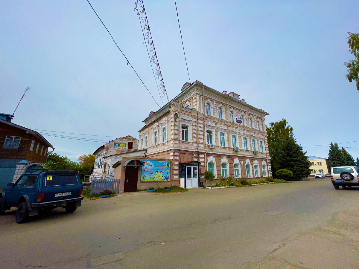 Овчинно-меховое производство приносило хорошую прибыль. Многие купцы к середине XIX века так разжились, что начали застраивать самую известную улицу села Большое Мурашкино — Свободы. Сейчас вся улица Свободы, как один большой музей под открытым небом. И ведь каждый особняк по-своему уникален, это и лепной декор, и такие интересные элементы архитектуры, как массивные эркеры. Представляю, как начал строить свой дом купец Иван Степанович Панышев, явно этот человек был с большими амбициями и любил жить с размахом. Если в селе практически все дореволюционные особняки построены в два этажа, то дом Панышева имеет три. Расположен по адресу: Нижегородская область, р. п. Большое Мурашкино, ул Свободы 89. В настоящее время в особняке находится ПФ РФ. Особняк Панышева, один из самых больших в поселке. За домом построен флигель в два этажа. Примерная дата постройки особняка — 1910 год. Со стороны главного фасада высокий аттик. Начала искать старинные фото этого особняка и смотрите, какое нашла. Фо