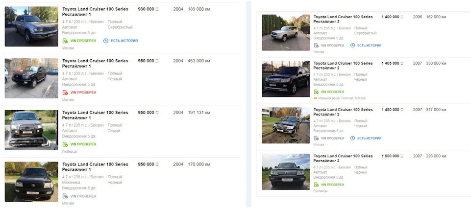 С момента окончания выпуска Toyota Land Cruiser 100 ( года производства 1998-2007) прошло уже больше 10 лет. На дорогах Москвы и ближайшего Подмосковья все реже встречаются эти автомобили. В начале 2000 –х годов этот автомобиль пришелся по душе бизнесменам, юридическим лицам и силовым структурам. Были у этой марки почитатели и из криминальных кругов. За свою надежность, простоту в обслуживании и ликвидность на вторичном рынке эти автомобили долгие годы возглавляли Топ рейтинга угонов. Даже сейчас встречаются автомобили с измененной маркировкой рамы, вваренными номерными элементами и просто нерастаможенные с поддельными ПТС. Поэтому, покупая такой автомобиль, не поленитесь – проверьте юридическую чистоту.