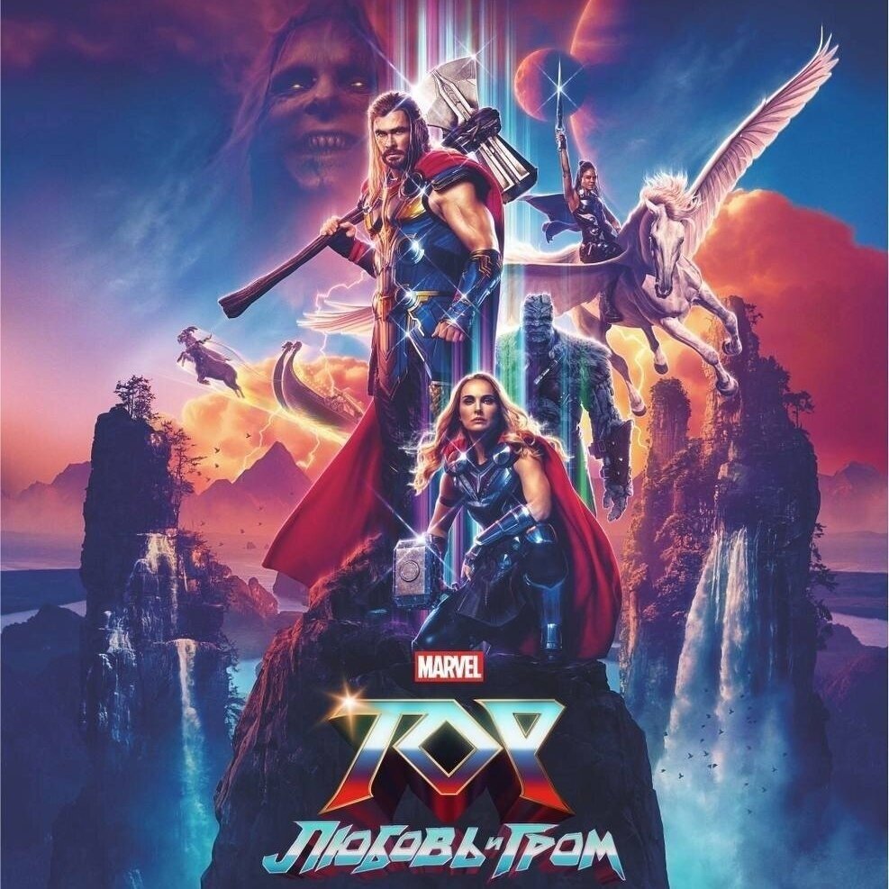 Ну вот мы и вернулись на какое-то время в те времена, когда премьеру фильма можно заценить лишь с экранки (так называемого CAMRip'a, который был снят прямиком из кинотеатра в день премьеры) Последний раз экрану я смотрел лет так 10 назад, а то и больше 😄 И, возможно, именно это повлияло на то, как сильно мне зашёл фильм! Ведь именно около 10 лет назад был расцвет фильмов от Marvel, где не было таких сложных хитросплетений сюжета, ни связи между другими вселенным, даже на каждый отдельный фильм был свой единственный злодей, который к концу картины успешно откланялся восвояси! Все это можно смело применить к четвёртому фильму о боге-громовержце: - Простой, но довольно захватывающий сюжет, где в центре событий давно забытая киновселенной Джейн Фостер в исполнении Натали Портман - Хорошая такая толика юмора по лекалам Тайка Вайтити - Становление сразу нескольких героев, любовная линия между ними, даа - Харизматичный злодей в лице Кристиана Бэйла, который не умеет играть ниже, чем на "о