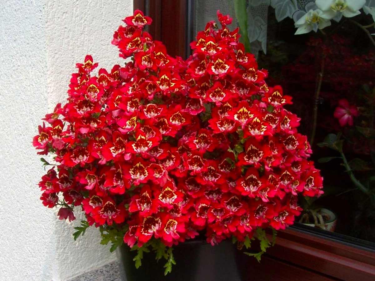 Схизантус, красивый сказочный цветок, его пёстрые цветки напоминают по строению и экзотической окраске напоминают цветки орхидей и сплошь покрывают растение.
