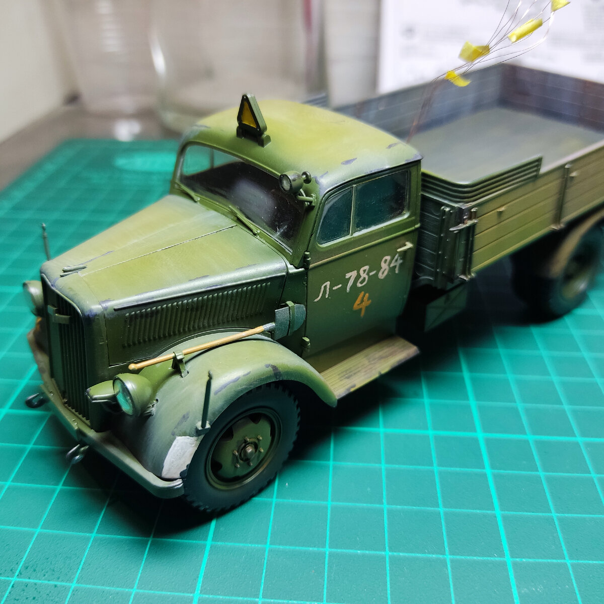 Всём добрый вечер, вчера мы наконец-то закончили с самим грузовиком, далее с ним манипуляции будут вместе с грузом. Начнём сегодня сборку груза, там же спрячем и элемент питания для освещения 😀. Груз будет в основном состоять из бочек ( они шли в наборе с Опелем). Итак приступаем к последнему шагу в инструкции. Готовим детали Z8, Z10 и Z12 в количестве по 6 штук. И склеиваем по инструкции, детали Z13 клеить не буду, тк провода буду убирать в бочки, а сверху отсутствие этих деталей видно не будет. Приступаем. Спустя полчасика имеем готовые 6 бочек. Модельным клеем их склеиваем вместе, для более правильного позиционирования и прихватки клеем скрепляем эти шесть бочек между собой модельным скотчем. Чтобы конструкция в итоге получилась ровной и аккуратной. Теперь необходимо разместить корпус элемента питания на данном грузе, и определить место входа проводов питания. Для большего реализма приклеил к крышке корпуса батареи канистру, а в крышке одной из бочек сделал отверстие для про