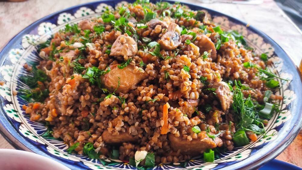 #гречка #гречкавкусно #казан #едавказане #ПоварОтБога Казан это конечно Вещь!!!! Готовлю теперь только в нем. Не пригорает и всё такое вкусное!!!! Ингредиенты: гречки, шампиньонов, Лук, морковь, свинины, Соль, Масло Способ приготовления: Подготовим продукты. В казан налить масло и расколоть. Обжарить Сначала свинину до золотистого цвета, потом вместе с луком. Добавим морковь и грибы, жарим минут 10. Гречку промыть и высыпать сверху слоем. Залить водой толщиной в палец (как на плов). Закрываем крышку и оставляем на 20 минут при слабом огне. Перемешать, если мало воды долить. Снять с огня и дать настояться. Гречка с грибами готова, грибы могут быть любые! Приятного аппетита!!!!
